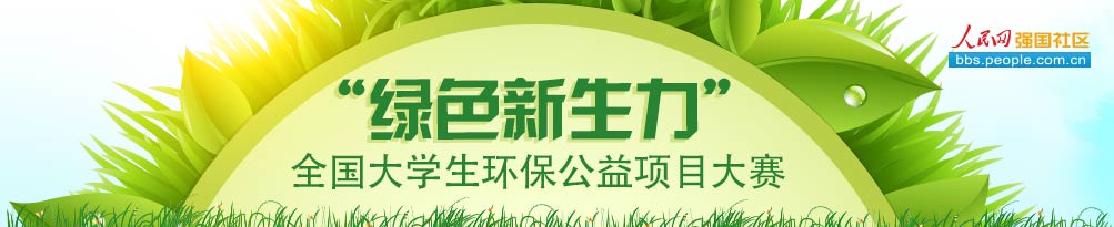 人民網(wǎng)主辦的“綠色新生力”全國大學(xué)生環(huán)保公益項(xiàng)目大賽日前落下帷幕,共有100多所高校的300多個(gè)團(tuán)隊(duì)參評,最終26個(gè)團(tuán)隊(duì)獲獎(jiǎng)。7-8月,各團(tuán)隊(duì)將公益項(xiàng)目實(shí)施進(jìn)程通過強(qiáng)國社區(qū)的大學(xué)生論壇進(jìn)行直播,獲得了眾多網(wǎng)友關(guān)注和好評,共710萬人次為熱心環(huán)保的大學(xué)生們留言、點(diǎn)贊,人民日報(bào)、人民網(wǎng)等媒體對團(tuán)隊(duì)跟蹤報(bào)道。