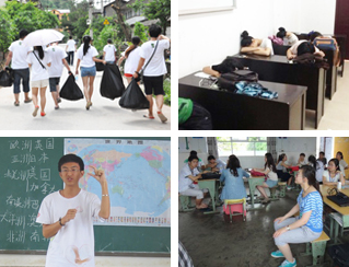 “V益·青竹”支教團隊由9名本科生組成。他們利用兩周暑假時間到湖北省竹溪縣蔣家堰鎮(zhèn)中原小學(xué),開展以“團遞V夢 支教遠航”的主題的實踐活動。自7月9日開始,從“一米陽光暖庸巴”主題愛心募捐和義賣、“支教路上共成長”主題支教、“我的V夢想”主題畫展暨文藝匯演、和“團遞V夢 支教遠航”主題宣講等四個方面開展實踐活動。團隊已經(jīng)在六堰廣場舉行了“一米陽光暖庸巴”報紙義賣和愛心募捐活動,將籌集到的善款和物資捐贈給中原小學(xué)。支教課堂上,志愿者們教授孩子們英語、華爾茲、電子琴、繪畫等課程,開設(shè)班級也由計劃中的一個班擴展到三個班。