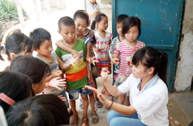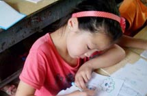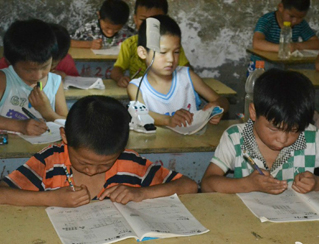鄉(xiāng)村小學(xué),沒有體育器材,沒有娛樂設(shè)施,孩子們只能選擇自娛自樂。有次,志愿者們看到孩子們用一根細樹棍,一塊石柱,就玩起了翹翹板。每到夜晚,志愿者的住處就擠滿了學(xué)生,大家或做游戲,或一起用筆記本電腦看哆啦A夢,從孩子們看動畫片的那份專注,志愿者們看得出來,孩子們很少能看到這種動畫片。天陰教室昏暗,加上學(xué)校經(jīng)常斷電,孩子們不得不在陰暗的環(huán)境中上課。老師拿來自己的小臺燈給在角落的孩子照明,即使在這樣的情況下,孩子們依然學(xué)習(xí)很認真。申倩老師應(yīng)該是最受歡迎的啦,她多次收到孩子們的“示愛書信”,那些小紙條上往往寫著“音樂老師你唱的歌很好聽,我喜歡你”
