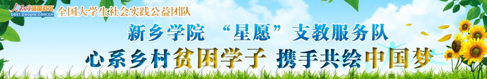 “星愿”義務(wù)支教服務(wù)隊于2009年成立,現(xiàn)有支教志愿者120余名。除多次開展暑期社會實踐支教活動外,在校期間他們還堅持每周二下午赴貧困小學(xué)義務(wù)支教活動。五年來,他們參與支教的次數(shù)達100余次,9000余小時課時。他們與新鄉(xiāng)市紅旗區(qū)平原小學(xué)、封丘縣潘店鎮(zhèn)老莊小學(xué)建立了長期幫扶關(guān)系,還在延津縣榆林鄉(xiāng)大榆林小學(xué)、夾堤小學(xué)建立了愛心支教服務(wù)基地。