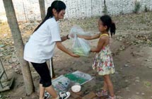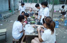 志愿者宋文靜是付里莊小學(xué)手語老師,是團隊隊員和孩子們公認的富有童趣的一小老師。她經(jīng)常陪孩子們做游戲,陪他們看哆啦A夢。但就是這樣一位老師,上了課堂卻像換了個人似的,非常嚴厲。志愿者王蒙苗是付里莊小學(xué)口才勵志課老師。課堂上,她認真教學(xué),課堂下用勵志故事激勵孩子們努力學(xué)習(xí)。因為經(jīng)常照顧生病的孩子,孩子們認為她最有愛的一個老師。志愿者孔令陵是后勤人員之一及封丘支教教務(wù)主任。她每天都會在五點去最近的商店買菜,然后摘菜、洗菜,做整個團隊和部分孩子的飯菜,保障全隊生活