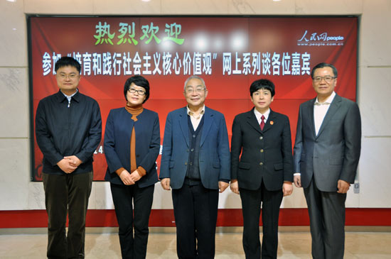 16日上午,北京市房山區(qū)委常委、宣傳部部長(zhǎng)趙佳琛,中國(guó)人民大學(xué)新聞學(xué)院黨委副書(shū)記羅建暉,國(guó)家電網(wǎng)公司思想政治工作部副主任方國(guó)元,北京市海淀區(qū)人民法院副院長(zhǎng)宋魚(yú)水,中國(guó)倫理學(xué)會(huì)名譽(yù)會(huì)長(zhǎng)、中國(guó)社科院研究員陳瑛作為第一場(chǎng)訪(fǎng)談的嘉賓,在人民網(wǎng)強(qiáng)國(guó)論壇與網(wǎng)友進(jìn)行在線(xiàn)交流。