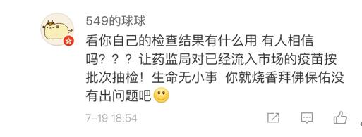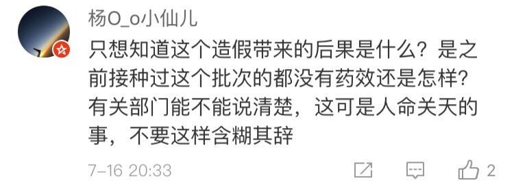 網友“楊O_o小仙兒”表示:“只想知道這個造假帶來的后果是什么?是之前接種過這個批次的都沒有藥效還是怎樣?有關部門能不能說清楚,這可是人命關天的事,不要這樣含糊其辭!