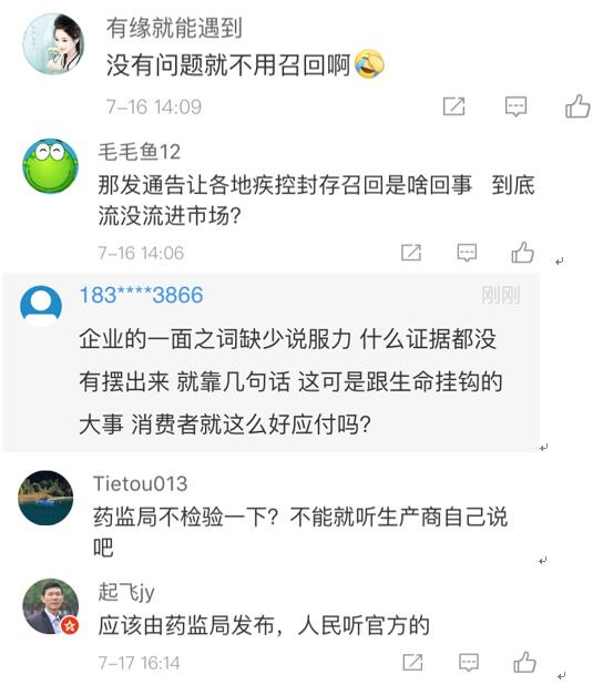 有網友認為:“企業(yè)的一面之詞缺少說服力,什么證據都沒有擺出來,就靠幾句話,這可是跟生命掛鉤的大事,消費者就這么好應付嗎?”