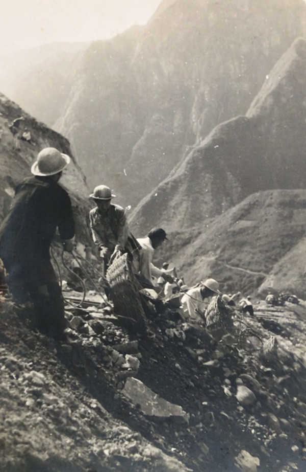 移山填溝修鐵路——寶成鐵路工地一角(崔敏 攝)