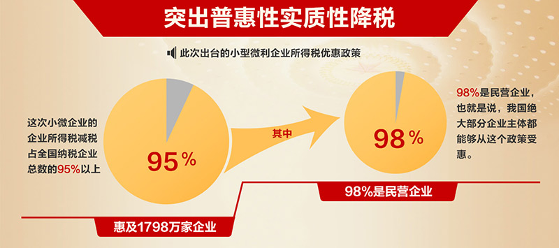 不僅是擴大了優(yōu)惠面,還提高了優(yōu)惠力度。稅率優(yōu)惠方面,按應納稅所得額不同,分別采用所得稅優(yōu)惠稅率。其中,應納稅所得額100萬元以下,稅負是5%,低于標準稅率20個百分點。應納稅所得額是100萬—300萬元之間的,稅負是10%,低于標準稅率15個百分點。這些數(shù)字,實實在在,真金白銀,非常重要。