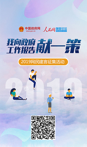 2019年全國(guó)兩會(huì)召開(kāi),你最關(guān)心什么,對(duì)政府工作有何建議和意見(jiàn),新的一年又有何期待?人民網(wǎng)邀請(qǐng)“獻(xiàn)一策”網(wǎng)友“現(xiàn)身說(shuō)法”。