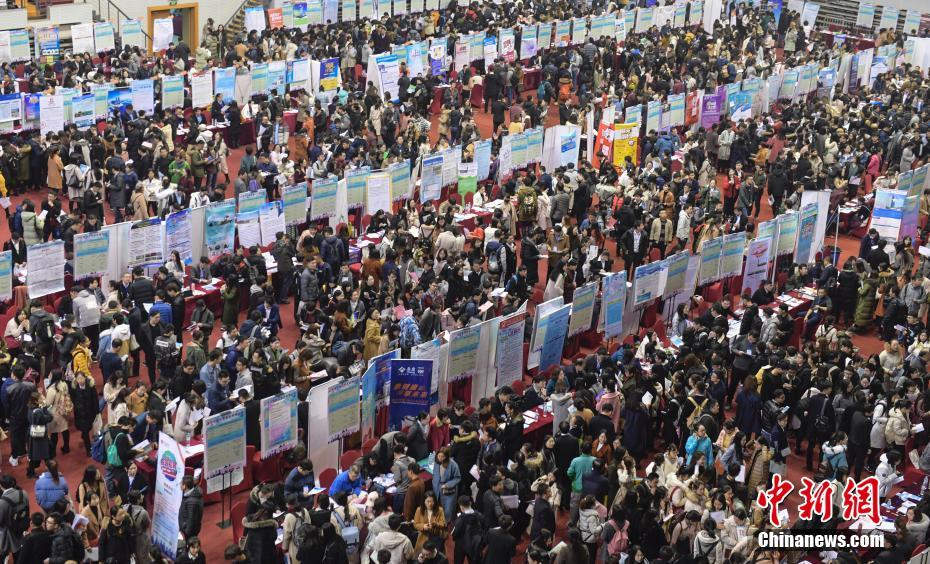 山東大學2019屆畢業(yè)生就業(yè)“雙選會”吸引眾多大學生前來應聘。(中新網(wǎng))