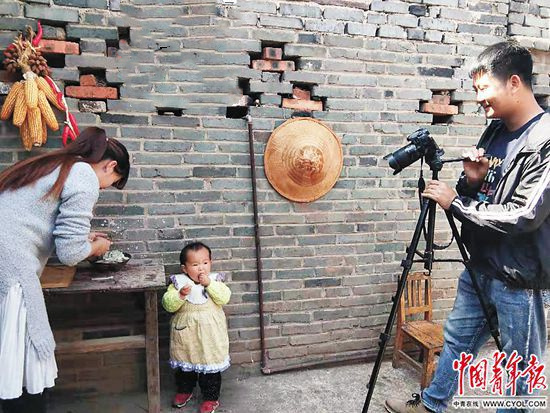 高玉樓從公司白領回到麗江榮將鎮(zhèn)創(chuàng)業(yè)賣芒果,為家人拍攝視頻。(中國青年報)