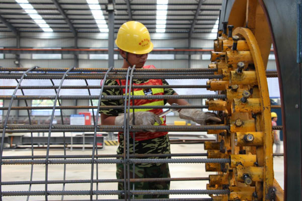 現(xiàn)在施工機(jī)械化程度非常高。圖為鋼筋籠機(jī)械加工設(shè)備,全自動(dòng)焊接。 中鐵四局一公司提供