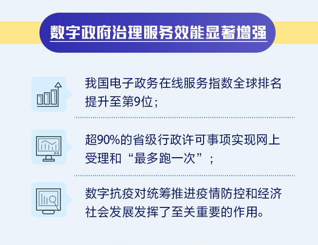 《報(bào)告》顯示,我國(guó)數(shù)字政府治理服務(wù)效能顯著增強(qiáng)。我國(guó)電子政務(wù)在線服務(wù)指數(shù)全球排名提升至第9位;超90%的省級(jí)行政許可事項(xiàng)實(shí)現(xiàn)網(wǎng)上受理和“最多跑一次”;數(shù)字抗疫對(duì)統(tǒng)籌推進(jìn)疫情防控和經(jīng)濟(jì)社會(huì)發(fā)展發(fā)揮了至關(guān)重要的作用。