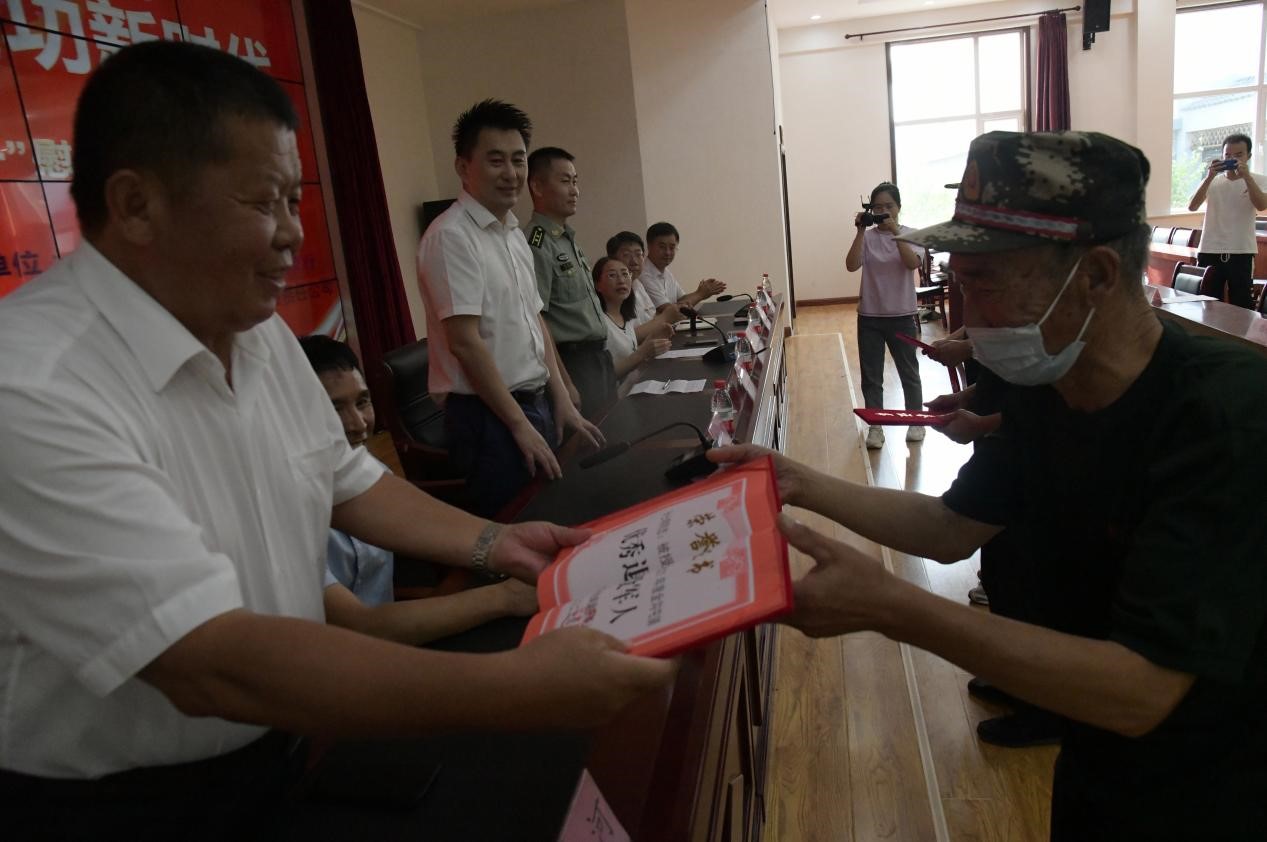 8月1日下午,灤平縣金溝屯鎮(zhèn)下營子村聯(lián)合愛心企業(yè)中國郵政儲蓄銀行灤平支行、灤平盛陽村鎮(zhèn)銀行金溝屯支行和承德久財農(nóng)牧開發(fā)有限責任公司共同舉辦了“退伍不褪色 建功新時代”第二屆“八一”慰問退役軍人座談會;顒蝇F(xiàn)場,大家歡聚一堂,共同慶祝中國人民解放軍建軍95周年,共敘魚水深情,并為優(yōu)秀退役軍人頒發(fā)榮譽證書。 王海琦 郎朗 攝