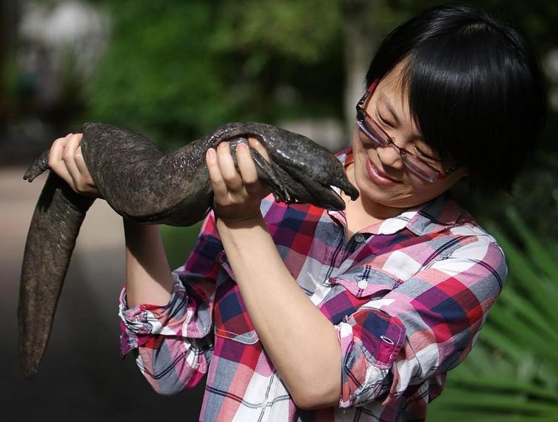 車靜與中國大鯢。(受訪者供圖)